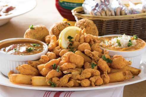 A: In my opinion, traditional Southern style always starts with frying off something in vegetable oil or butter. We love to fry everything! Fish fry is a combination of flour, corn meal, and spices blended to make a crunchy crust for shrimp, fish, crab claws, oysters, and all the fixings such as French fries, hush puppies, onion rings, etc.