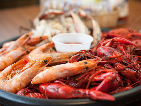 A: Our seafood is prepared differently depending on the time of year. You can get crawfish from late January until early summer. During this time of year, boiled seafood is at its prime! The traditional way to eat crawfish is boiled spicy with other sides in the boil like potatoes, mushrooms, corn on the cob, onions, garlic, sausage, hot dogs, celery, etc.
