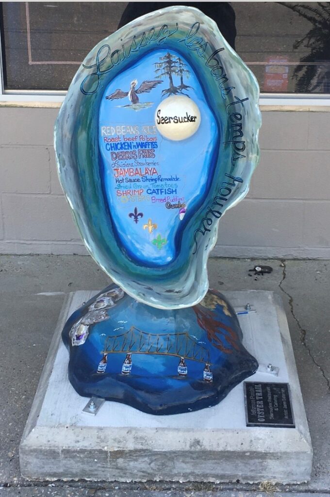 A: The Louisiana Oyster Trail came about after the BP oil spill to spread the word that Louisiana seafood was safe to eat. The trail is an experience focusing on Jefferson Parish restaurants serving Louisiana oysters, and they are identified by a 3-foot tall oyster sculpture hand-painted with flair by a local artist.