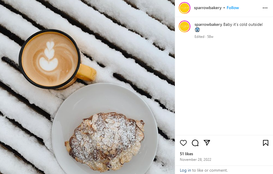 This could be as simple as taking some phone photos of customers already having a genuinely delightful experience near your patio fire, your shop aglow in wintery decor, or something else your visitors will want to experience themselves. Don’t forget about the natural elements (like snow on the window sills) that communicate charm and ambiance and evoke some pretty positive emotions.